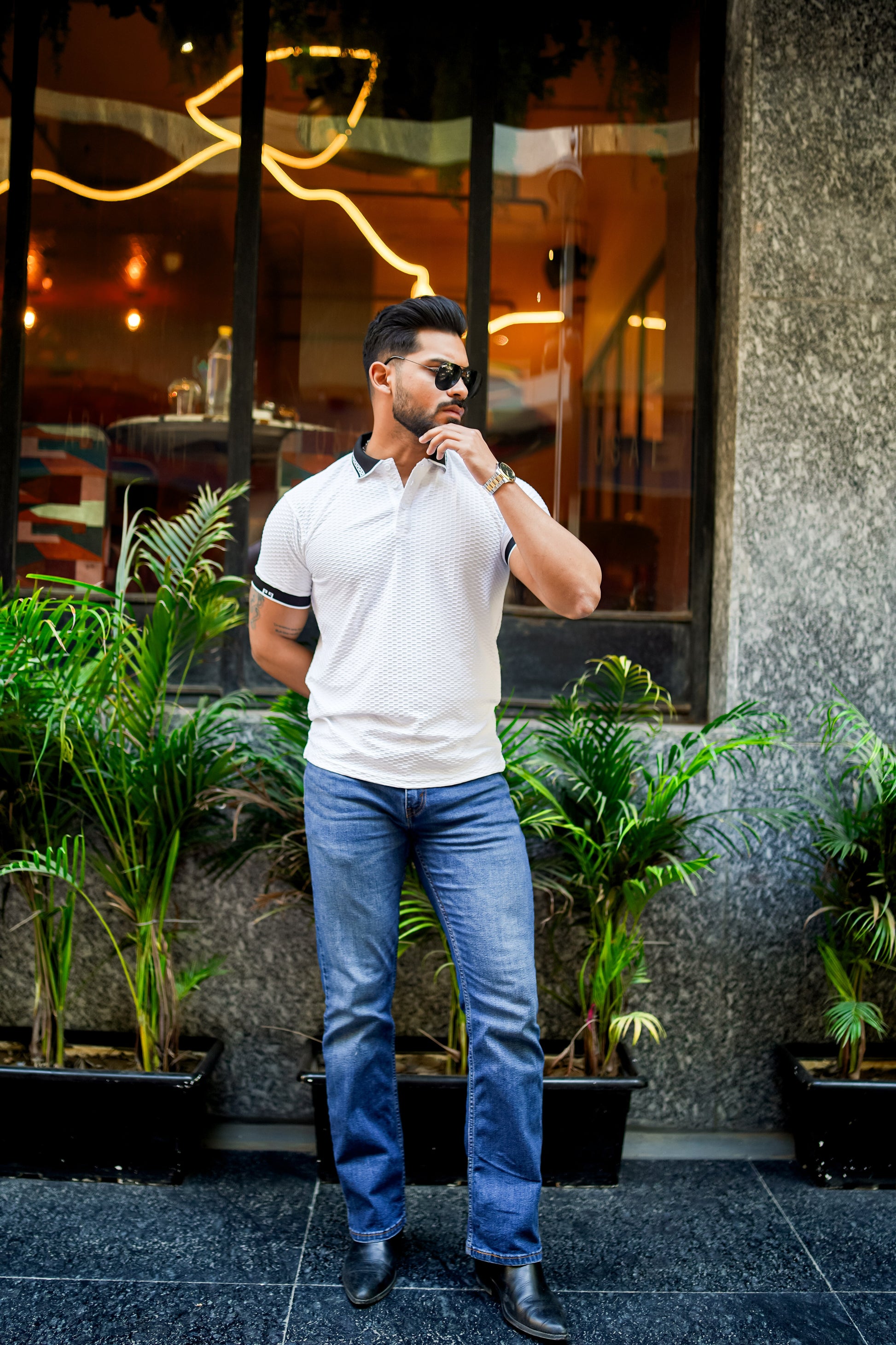 Textured Luxe White Polo T Shirt - Tailored Fit